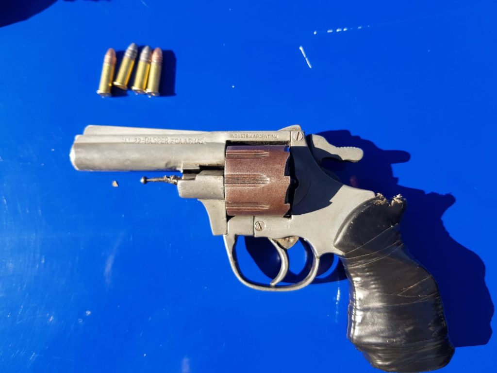 Efectivos de la División Patrulla Urbana, en barrio Banda Norte, calle Isabel la Católica esquina León Paliere, realizaron el control de dos hombres de 21 y 42 años, que se movilizaban en una motocicleta Keller 110 cc, tras un palpado preventivo se les observó un arma de fuego de tipo Revólver calibre 22, y sustancia prohibida. Por lo que se solicitó la presencia de efectivos de FPA, quiénes realizaron el secuestro de Marihuana compactada. Siendo los efectos y personas trasladadas a sede de Unidad Judicial N° 3.