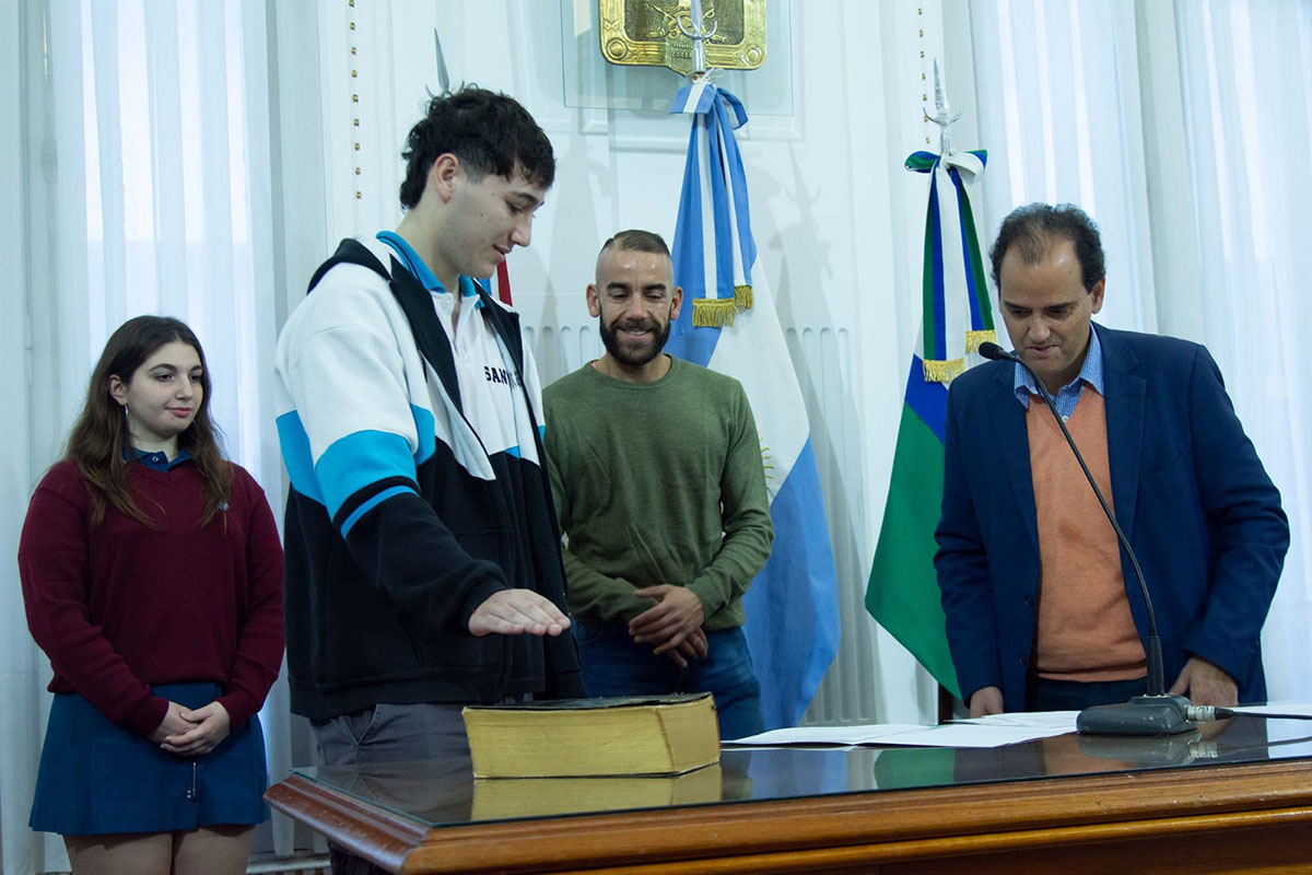 El intendente Juan Manuel Llamosas tomó juramento a un nuevo Gabinete Estudiantil. La ceremonia tuvo lugar en el Salón Blanco del Palacio Municipal y contó con la participación de alumnos de los colegios Hispano Argentino y I.P.E.T. Nº 203 Dr. Juan Bautista Dichiara quienes compartirán una jornada de trabajo junto a los funcionarios del Gobierno Municipal. El Gabinete estudiantil es un programa que fomenta la participación juvenil y es motorizado por la Subsecretaría de la Juventud del gobierno local.