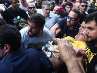 El postulante, que tiene 22% de aprobación y lidera las encuestas cuando no figura Lula da Silva como presidenciable, salió en andas llevado por su entorno, en medio de una multitud. Se tapó el tórax con una especie de camiseta o trapo, pero no se veían gotas de sangre.