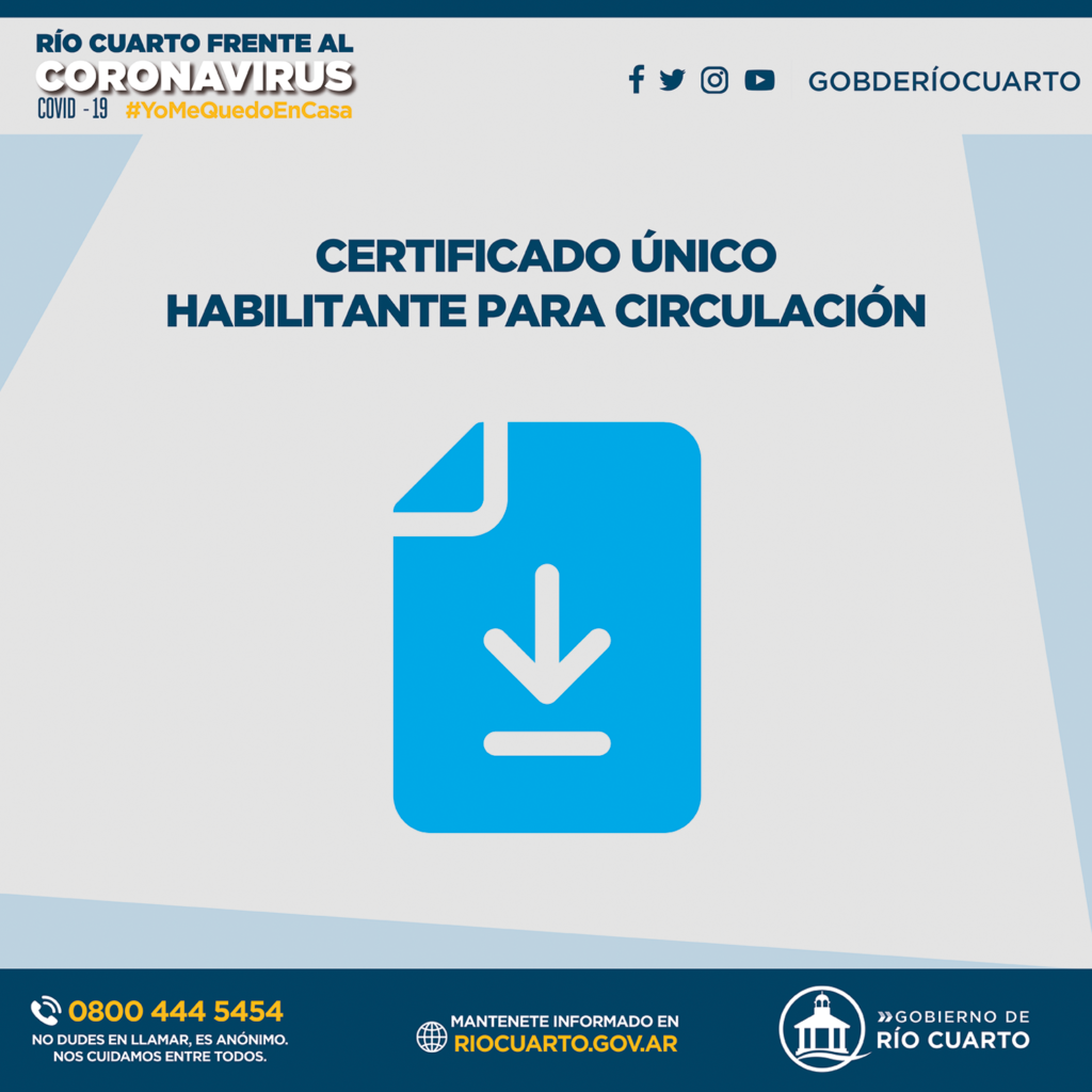 En el marco de la emergencia sanitaria por el Coronavirus COVID-19, se estableció el certificado único habilitante de validez nacional para circular en la vía pública, solo para los exceptuados del aislamiento social, preventivo y obligatorio.