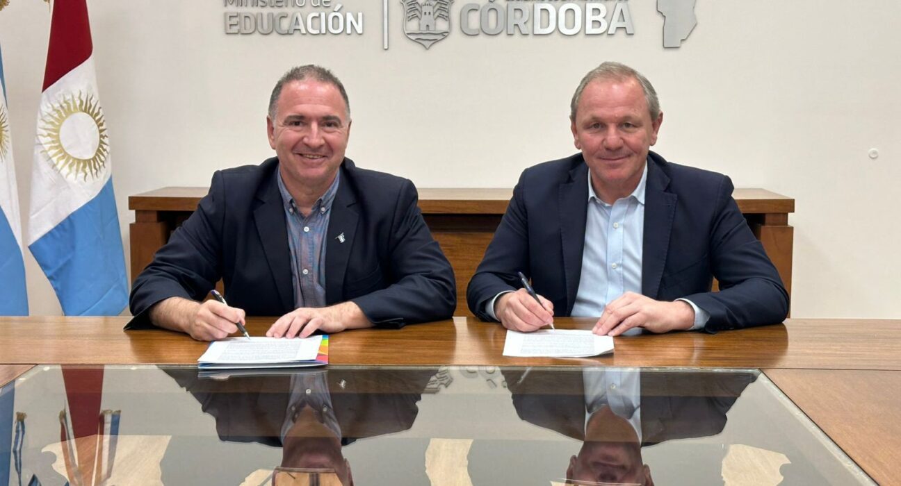 La firma del acuerdo se realizó este lunes en la ciudad de Córdoba, con la presencia del intendente Guillermo de Rivas y del ministro de Educación, Horacio Ferreyra, quienes destacaron la importancia de seguir trabajando de manera articulada en beneficio de la educación y el desarrollo de los jóvenes riocuartenses.