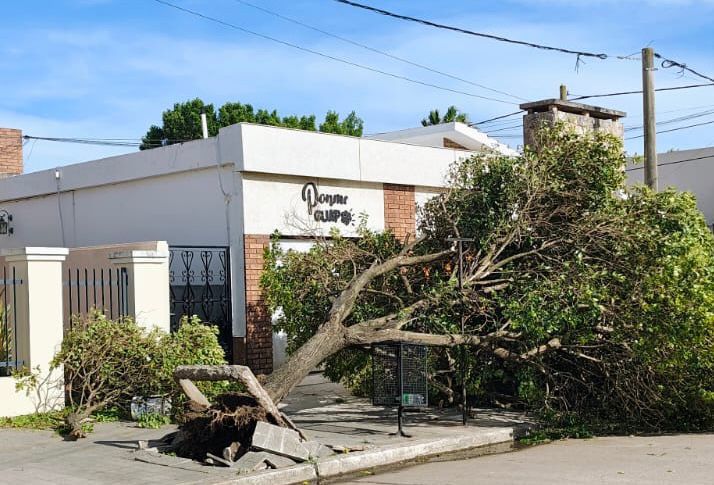 Las ráfagas de viento —que en algunos sectores superaron los 170 km/h— provocaron voladuras de techos, caída de árboles y postes, interrupciones parciales del servicio eléctrico y anegamiento de calles.