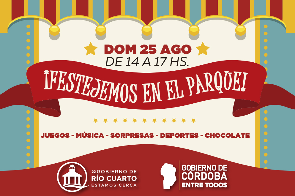 El próximo domingo 25 de agosto, el Gobierno de Córdoba junto a la Municipalidad de Río Cuarto, realizarán en conjunto el festejo del Día del Niño con numerosas actividades deportivas, recreativas, y culturales.