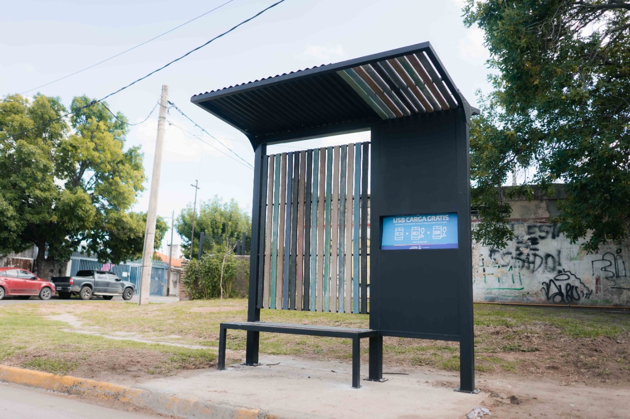 Se trata de un proyecto presentado por recuperadores urbanos y ejecutado en coordinación con la Secretaría de Gobierno Abierto y Modernización, la Subsecretaría de Transporte y la Subsecretaría de Políticas Sociales, que consiste en estructuras realizadas con hierro y barras de plástico reciclado (provistas por la plastiquera municipal), las cuales poseen cargadores de celular e iluminación automática, generadas por un panel solar ubicado en el techo de las mismas.