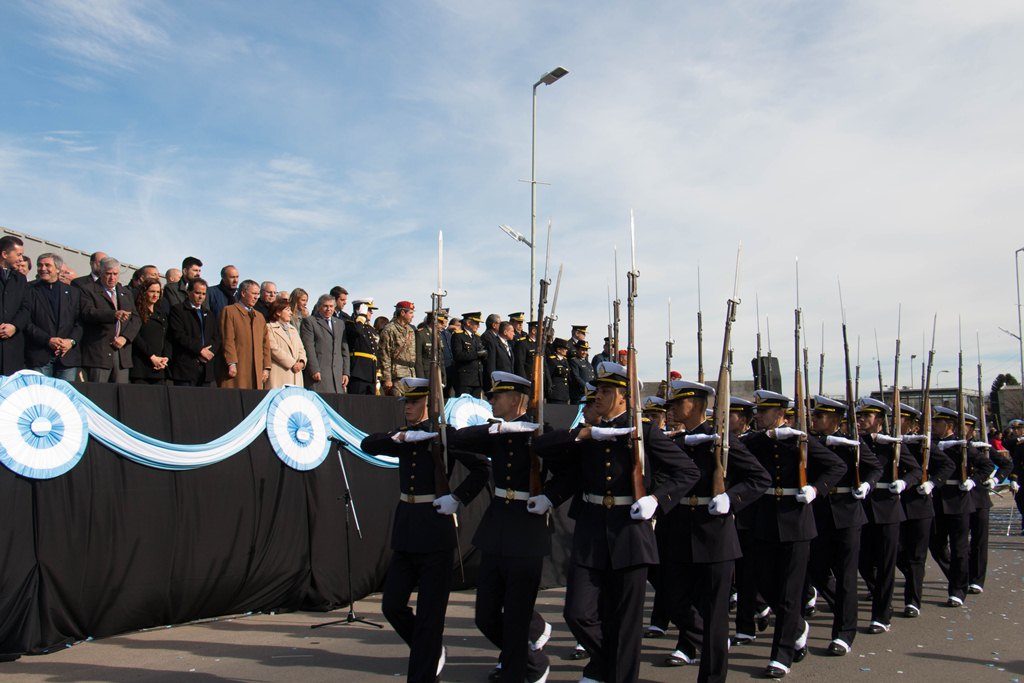 Finalmente, y a modo de cierre de la ceremonia, efectivos de las fuerzas de seguridad llevaron a cabo un desfile rindiendo honores a nuestro símbolo patrio.