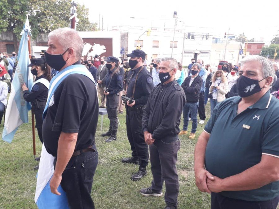 También participaron del acto familiares de veteranos y caídos, representantes de instituciones locales y de las fuerzas armadas, y funcionarios municipales, provinciales y nacionales. Previamente, se había realizado el izamiento protocolar de banderas y la entrega de ofrendas florales en la Plaza “Héroes de Malvinas”.