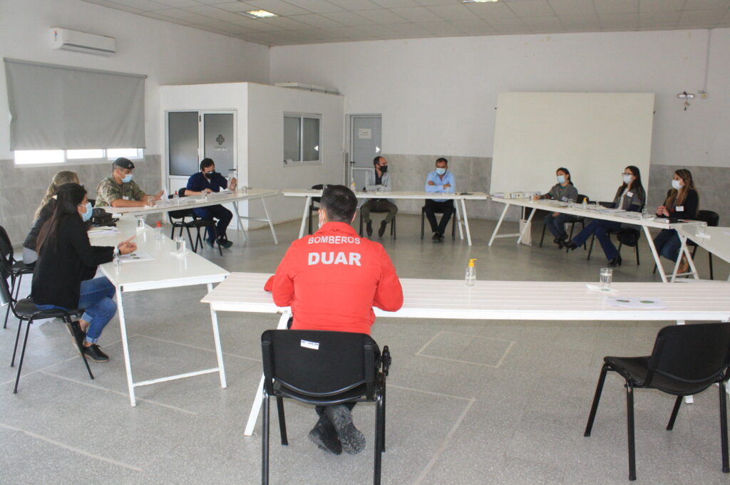 Profesionales del COE Central, COE Regional y el Gobierno de Las Higueras realizaron una reunión de trabajo en el SUM de calle Agustín Tosco y un recorrido de prevención a las instituciones privadas que se encuentran instaladas en la localidad y que requieren de cuidados sanitarios especiales para prevenir la propagación del Coronavirus.