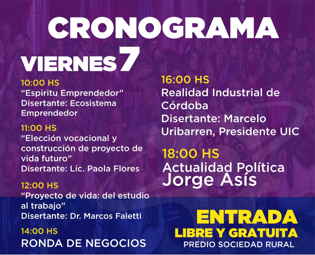 También se desarrollarán charlas y disertaciones con la presencia de consagrados analistas y referentes nacionales, entre los cuales se destacan el presidente de la Unión Industrial Argentina, Miguel Acevedo; el periodista y escritor Jorge Asís; el político y economista Alfonso Prat Gay; y el presidente del Instituto IERAL, Marcelo Capello, entre otros.