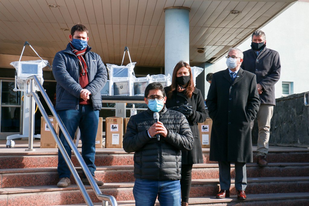 El vicegobernador Manuel Calvo entregó este lunes, nuevo equipamiento al Hospital San Antonio de Padua de la Capital Alterna, con el objetivo de reforzar las acciones de contención del coronavirus en el sur provincial. Con una inversión cercana a los nueve millones de pesos, la segunda autoridad provincial, junto al ministro de Salud, Diego Cardozo otorgó al nosocomio local, diez respiradores y diez monitores multiparamétrico.