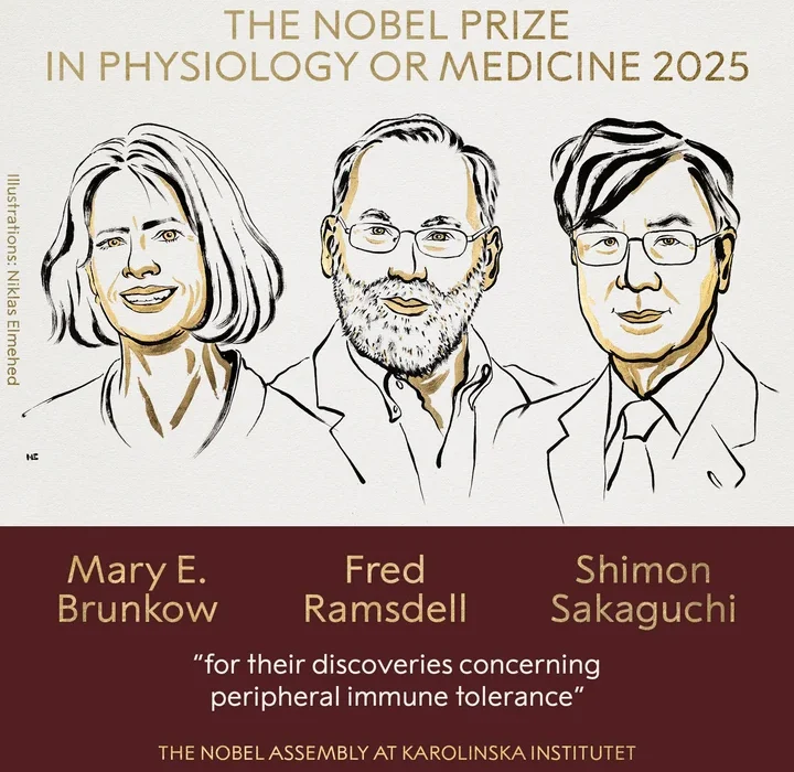 El Premio Nobel de Medicina o Fisiología de 2025 fue otorgado este lunes a Mary E. Brunkow, Fred Ramsdell y Shimon Sakaguchi «por sus descubrimientos sobre la tolerancia inmune periférica».