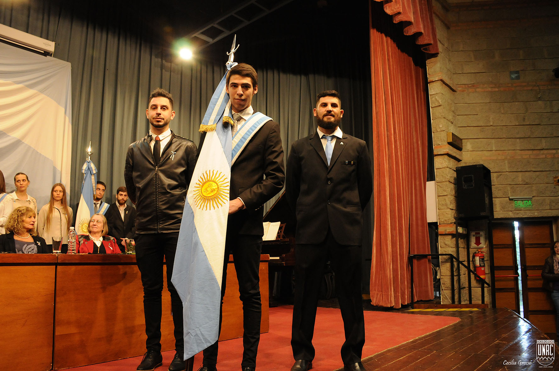 Serán escoltas de la Bandera Mayor de la UNRC, Oscar Alberto Verna, de la carrera Licenciatura en Trabajo Social (promedio 9,46) y Gastón Martín Villegas Pérez, de la carrera Ingeniería Mecánica (promedio 9,21).