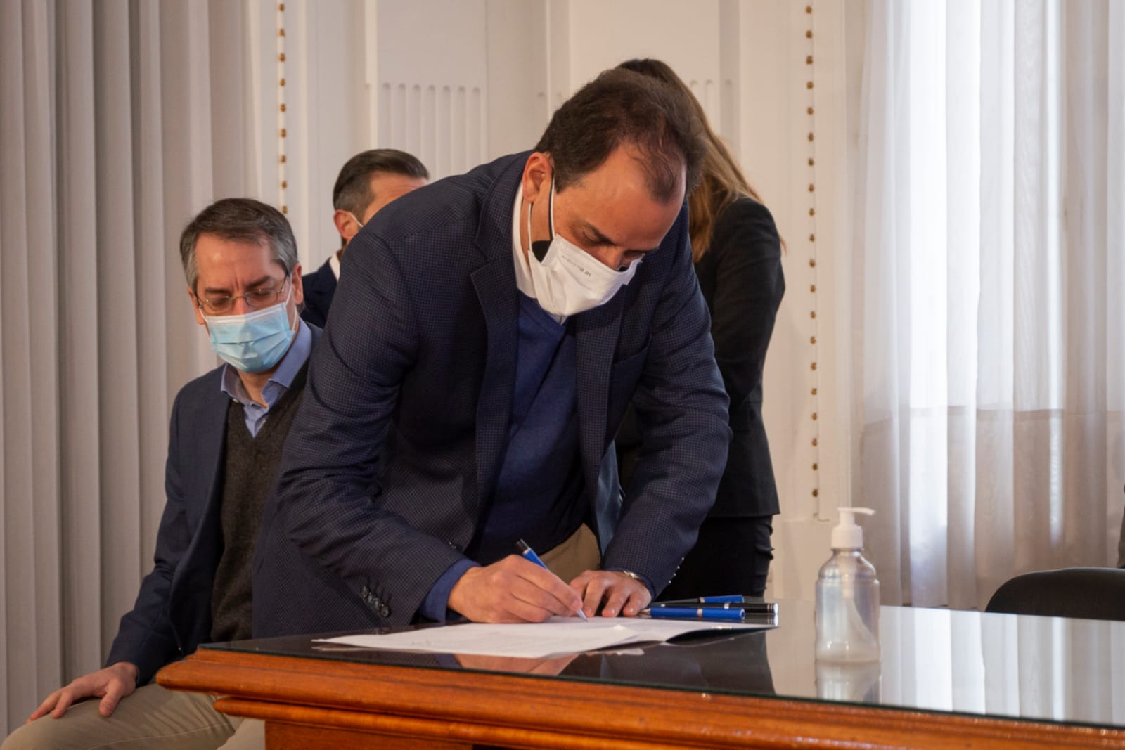 El vicegobernador Manuel Calvo y el intendente Juan Manuel Llamosas suscribieron el contrato de adjudicación para las obras de pavimentación de más de 75 calles distribuidas en ocho barrios ubicados en la ciudad de Río Cuarto. También fue parte de la rúbrica el presidente de la Agencia Córdoba de Inversión y Financiamiento (ACIF) Marcelo Botta.