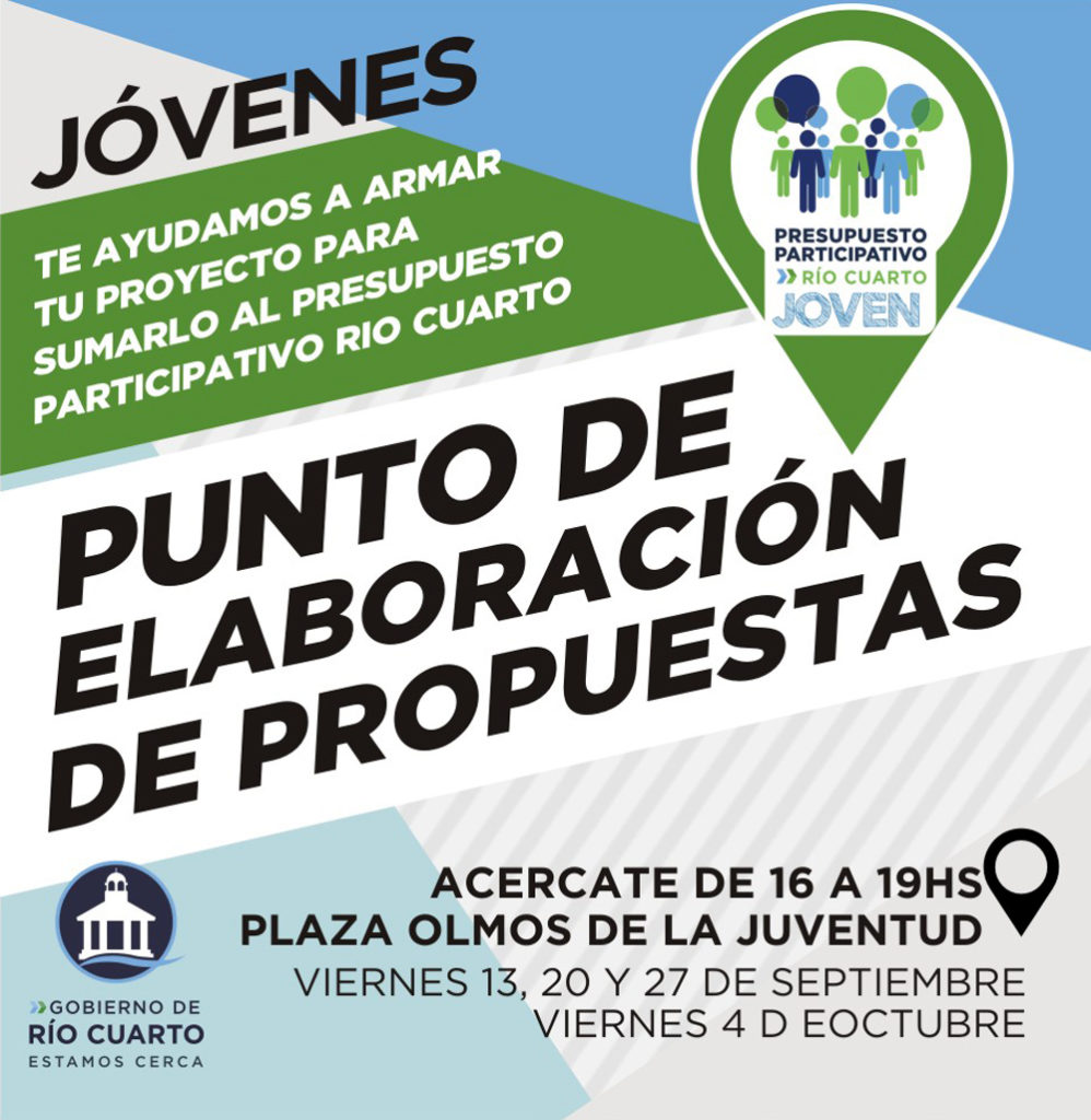 En tanto, el punto de consulta para el PP Joven funcionará el viernes 27 de septiembre de 16 a 19 hs. en la Plaza Olmos de la Juventud.