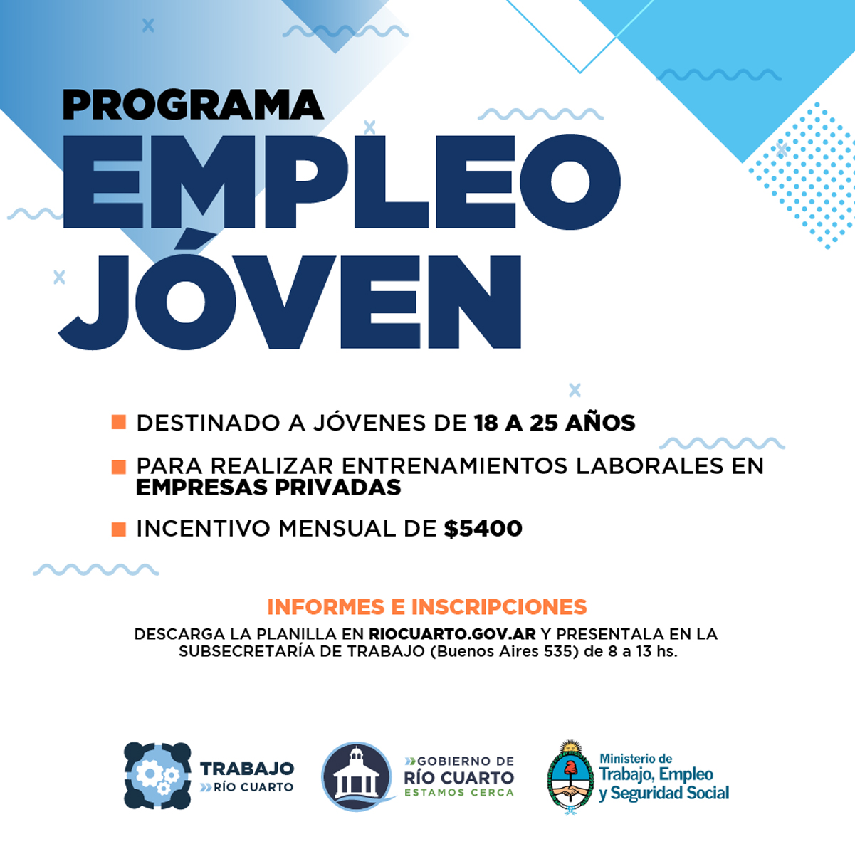 Se reabrieron las inscripciones del Programa de Empleo Joven, dependiente del Ministerio de trabajo de la Nación, y ejecutado por la Subsecretaría de Trabajo del Gobierno de Río Cuarto.