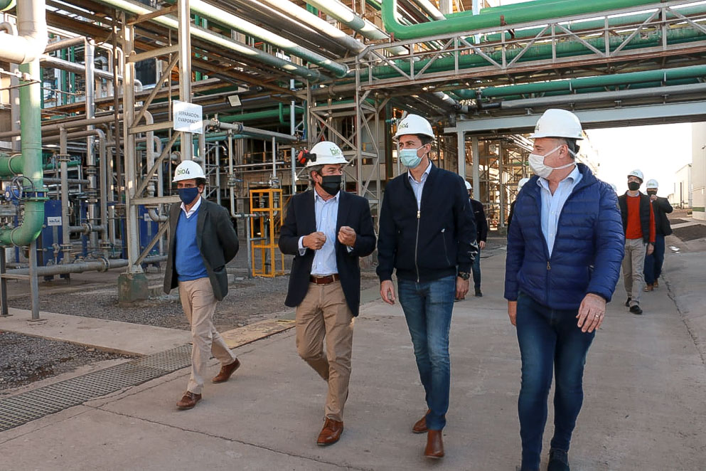 El vicegobernador, Manuel Calvo, recorrió este lunes junto al intendente riocuartense Juan Manuel Llamosas y ministros del Gabinete provincial la planta de Bio4, la firma cordobesa productora de bioetanol y que ha decidido diversificar su línea de fabricación para obtener un alcohol de mayor calidad, apto para ser utilizado como materia prima en la elaboración de alcohol sanitizante y en gel.
