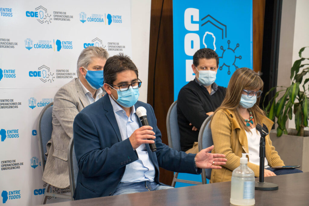 El ministro de Salud de la provincia de Córdoba, Diego Cardozo junto a la secretaria de Prevención y Promoción de la Salud, Gabriela Barbás y el intendente municipal Juan Manuel Llamosas, presentaron este martes, un nuevo informe de la situación epidemiológica de la ciudad de Río Cuarto.