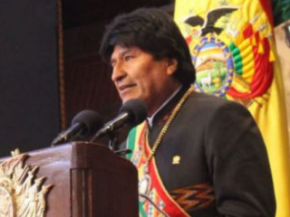 El presidente Evo Morales llegó esta mañana a los actos del día de las Fuerzas Armadas bolivianas en la ciudad de Cochabamba sin portar estos símbolos, que sí lució el lunes en Potosí durante la celebración del aniversario de la independencia del país.