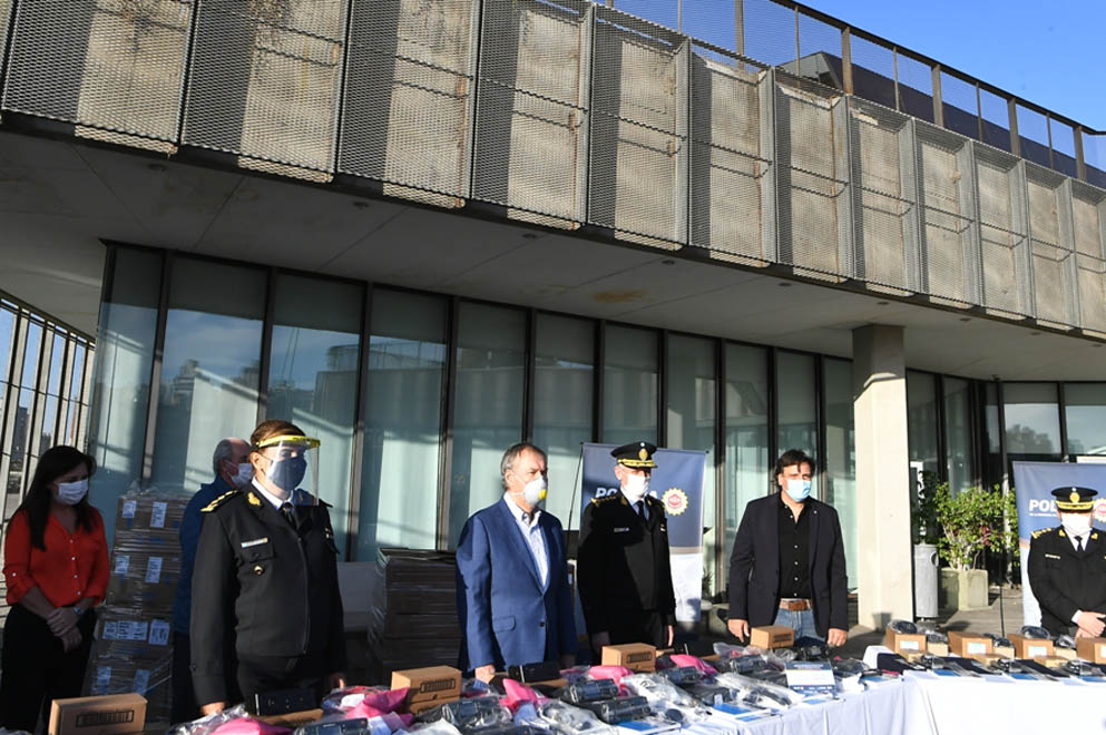 El acto se hizo esta tarde en el Centro Cívico y se enmarca en el Plan Integral de Seguridad Ciudadana y Prevención del Delito. Permitirá dotar a la fuerza de la última tecnología internacional en materia de comunicación radial policial. El equipo de manos libres será distribuido en todo el territorio provincial.
