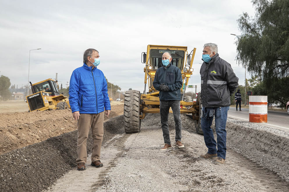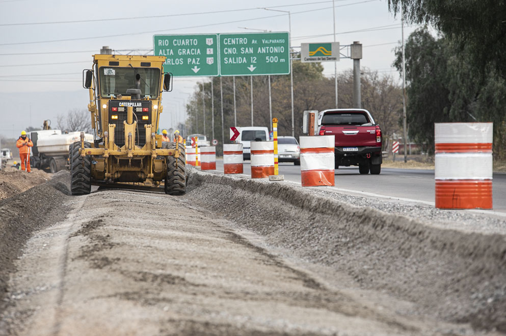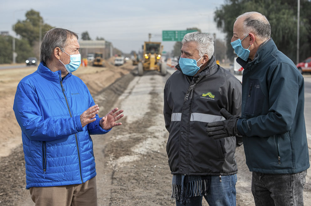 El gobernador recorrió el arco sur, donde se está ampliando la avenida entre los distribuidores de Ruta 36 y el Camino San Carlos. Allí se iniciaron los movimientos de suelo para construir el carril de 3,65 metros de ancho.