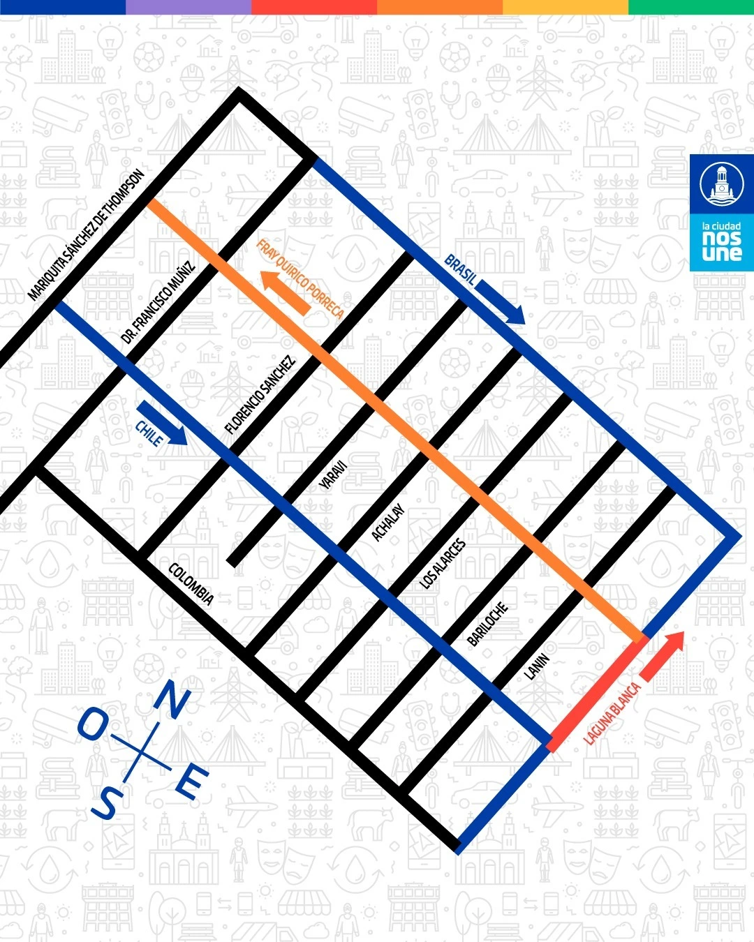 El sector cuenta con la semaforización necesaria para ordenar a los conductores que circulan por la zona, generando un ambiente seguro tanto para peatones como para automovilistas. Para lograr este nuevo esquema, se pavimentaron cuatro cuadras sobre calle Chile y otras dos sobre Laguna Blanca, de manera tal que la transitabilidad por el lugar sea ágil y dinámica.