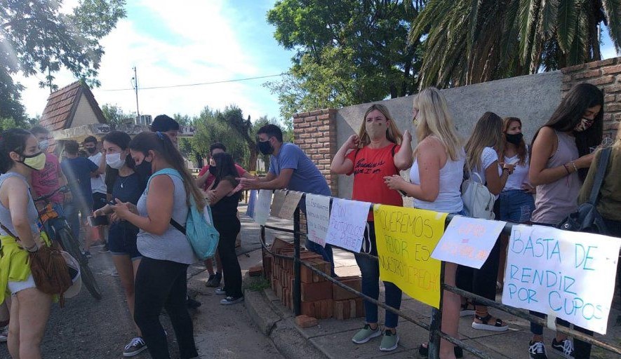 Un concurrido grupo de estudiantes de la facultad de Ciencias Humanas se reunió en la explanada de ingreso de la Universidad Nacional de Río Cuarto para reclamar poder rendir los exámenes finales. La mayoría de los peticionantes son los alumnos de Abogacía.